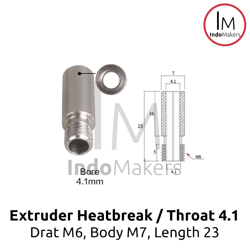 2 in 1 Hot End Throat M6 Stainless Steel Bore 4.1mm Straight Through