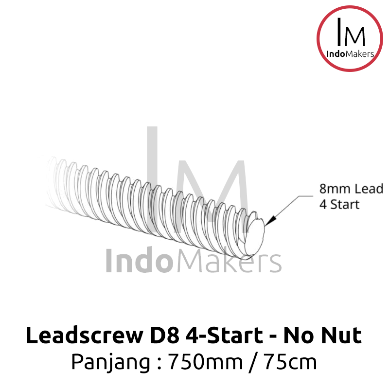 1 batang 3D Printer Lead Screw T8-2-D8 750mm Leadscrew No Nut