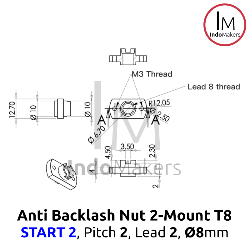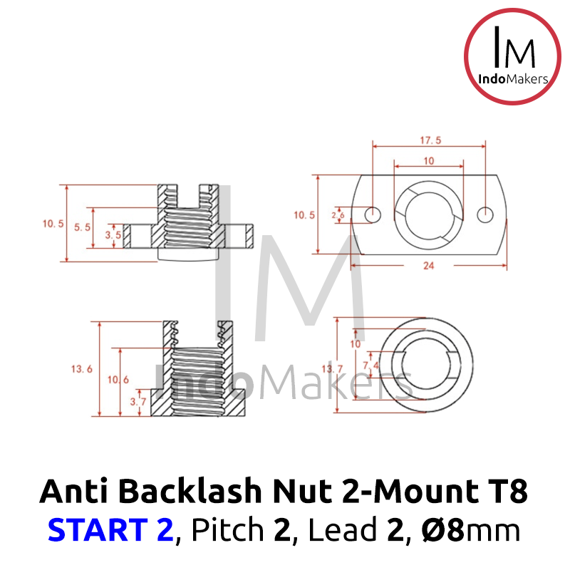 3D Printer Leadscrew 8mm 2-Start Anti Backlash Spring Nut 2-Mount
