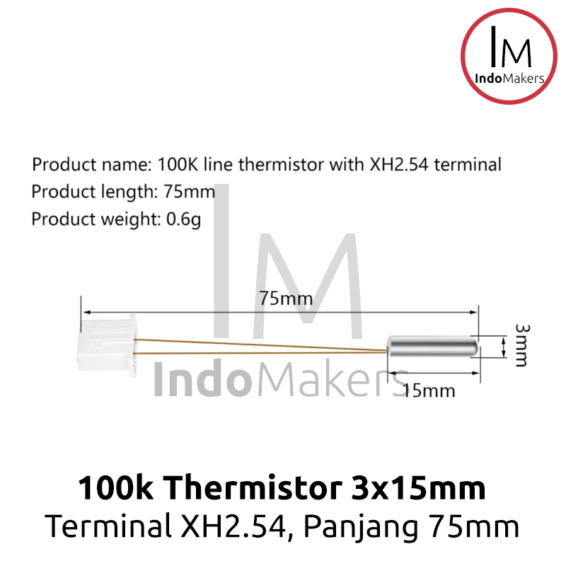 3D Printer Thermistor 100k M3 x 15 XH2.54 Connector 75mm