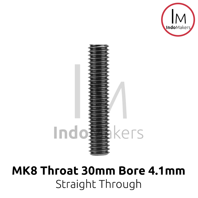 3D Printer Throat Bore 4.1mm Thread M6 x 30mm All Metal Straight Through