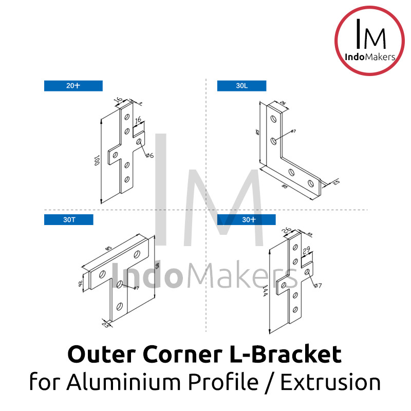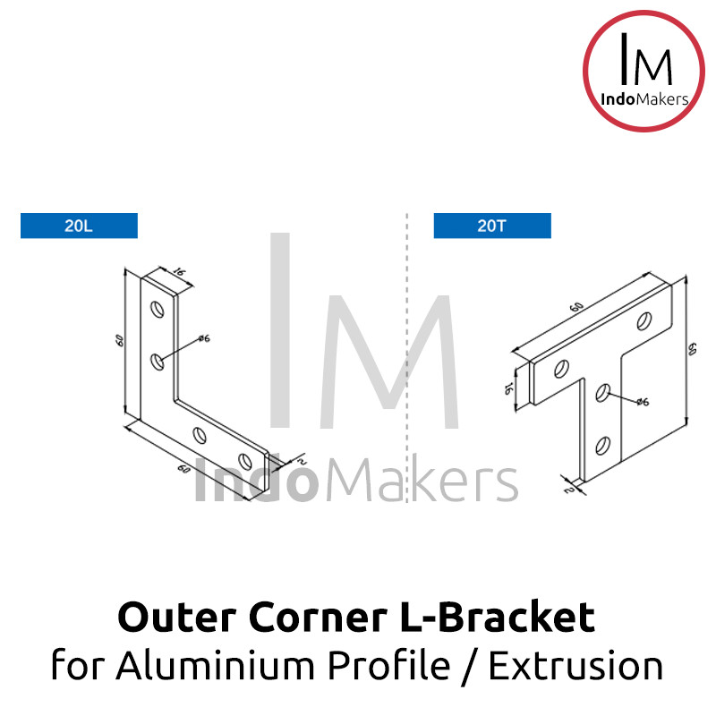 Bracket aluminium profile L joint ini bisa digunakan untuk menyambung 2 buah potongan aluminium profile, dan bisa digunakan untuk memperkuat sudut sambungan dengan menambahkan bracket ini.