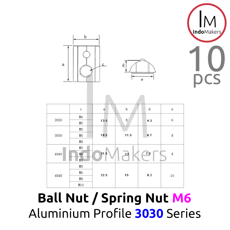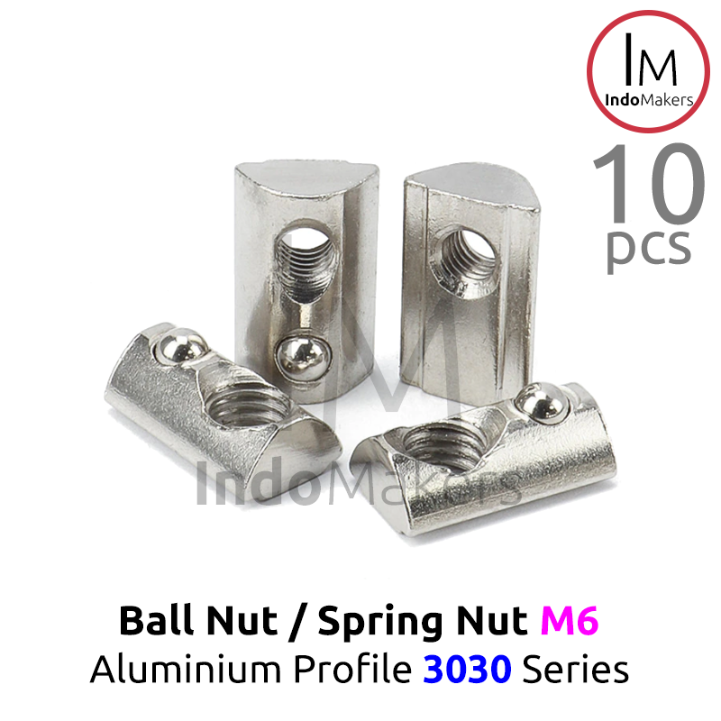 Ball Nut / Spring Nut sliding M6 Aluminium Profile 3030 Series Isi 10pcs