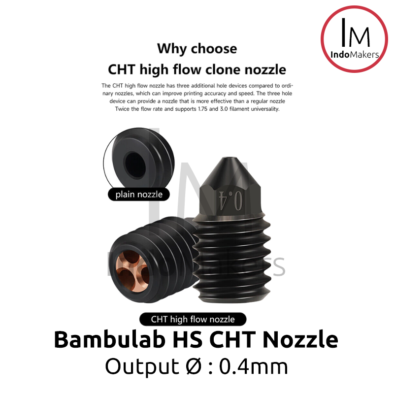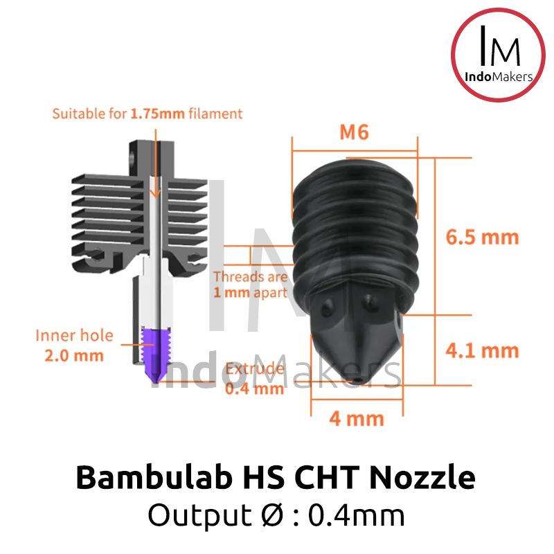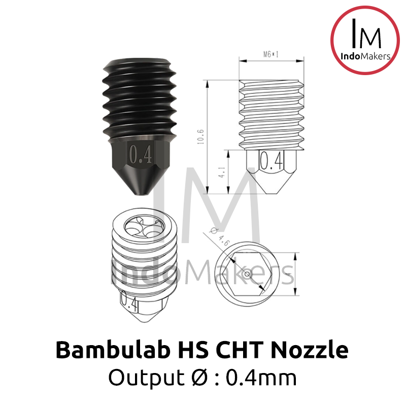 Bambulab 3D Printer CHT Hard-Steel Nozzle 0.4mm Output, Input 1.75mm