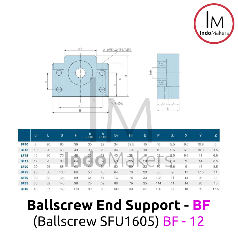 BF12 / BF 12 Ballscrew SFU1605 / SFU 1605 End Support