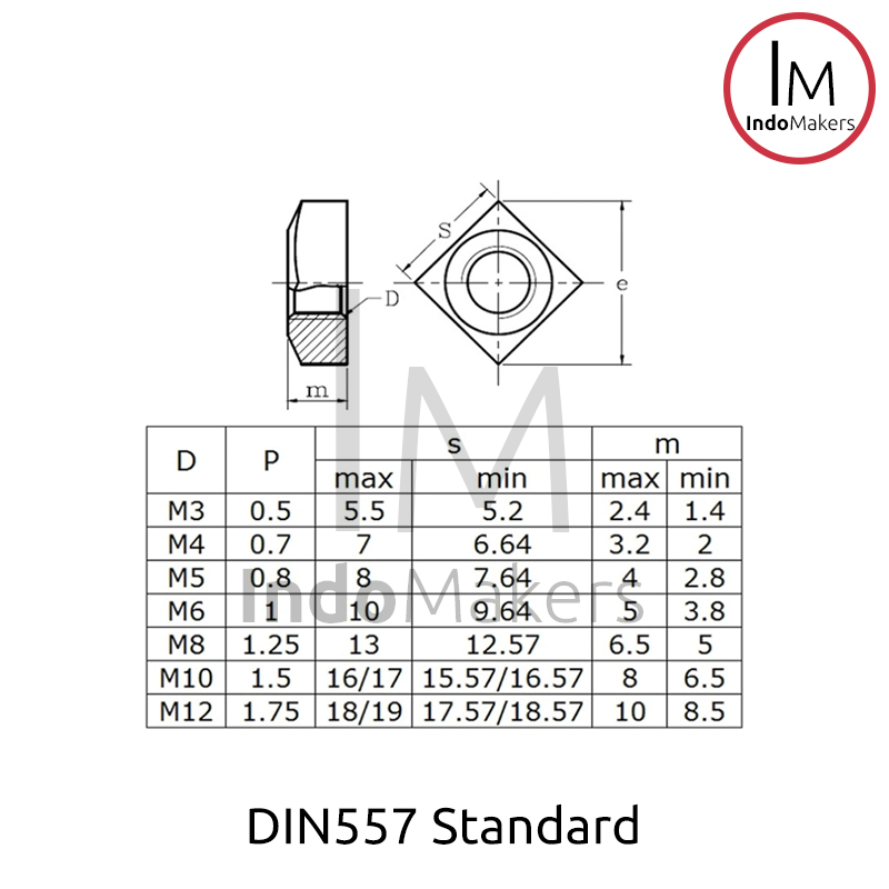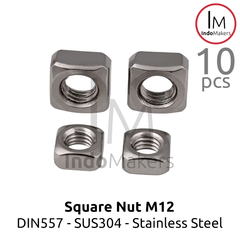 DIN557 Square Nut / Mur Kotak Stainless Steel SUS304 M12 / Kunci 19 Isi 10pcs