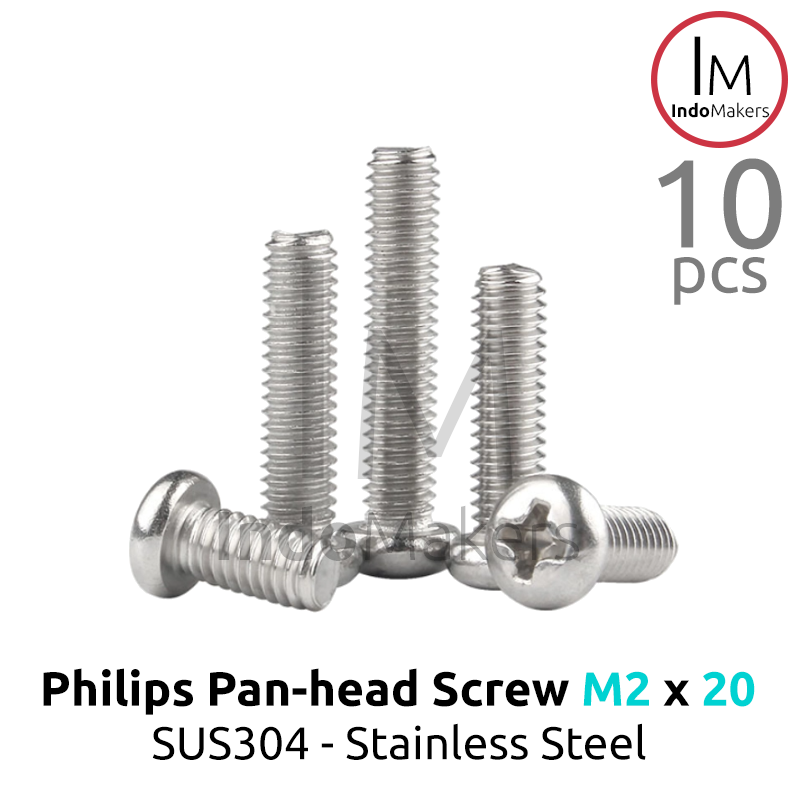 10 pcs DIN7985 Philips Panhead Screw / Baut Plus Stainless Steel M2 x 20