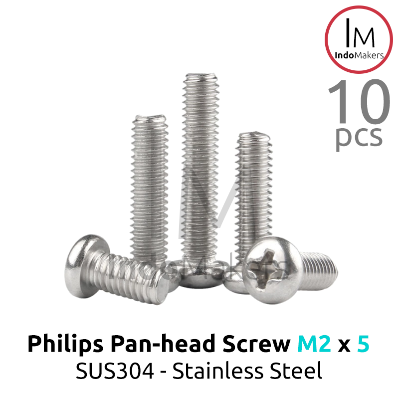 10 pcs DIN7985 Philips Panhead Screw / Baut Plus Stainless Steel M2 x 5