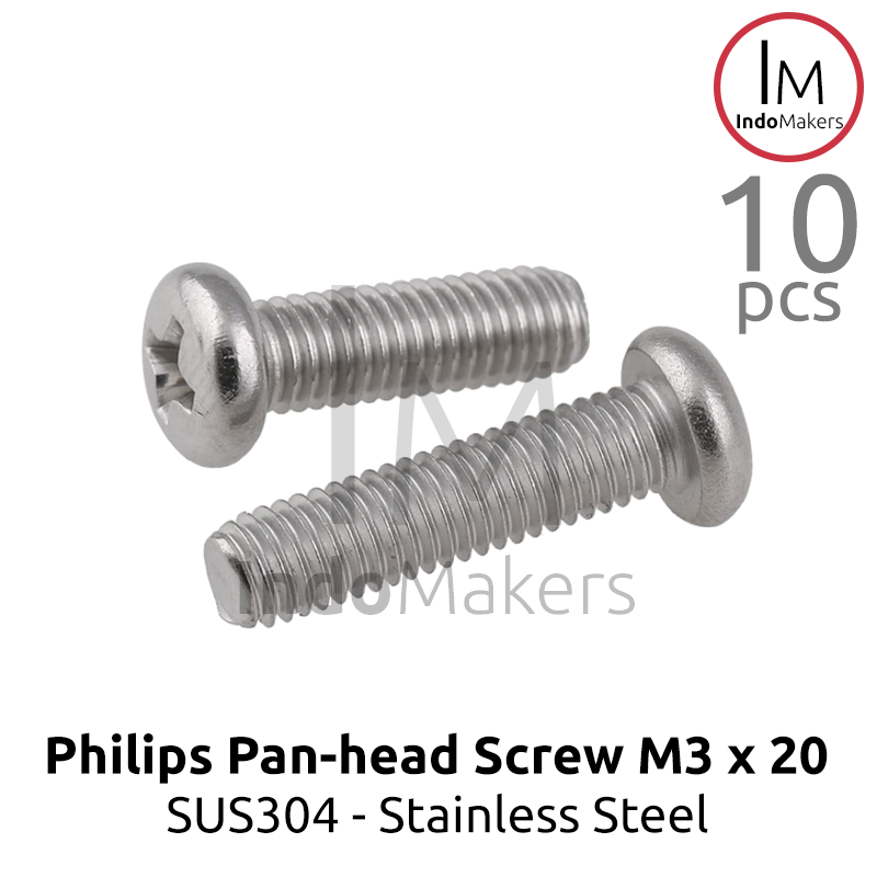 10 pcs DIN7985 Philips Panhead Screw / Baut Plus Stainless Steel M3 x 20