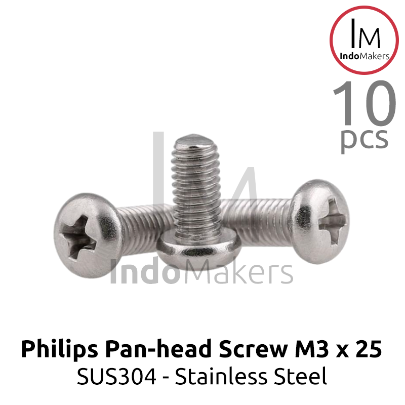 10 pcs DIN7985 Philips Panhead Screw / Baut Plus Stainless Steel M3 x 25