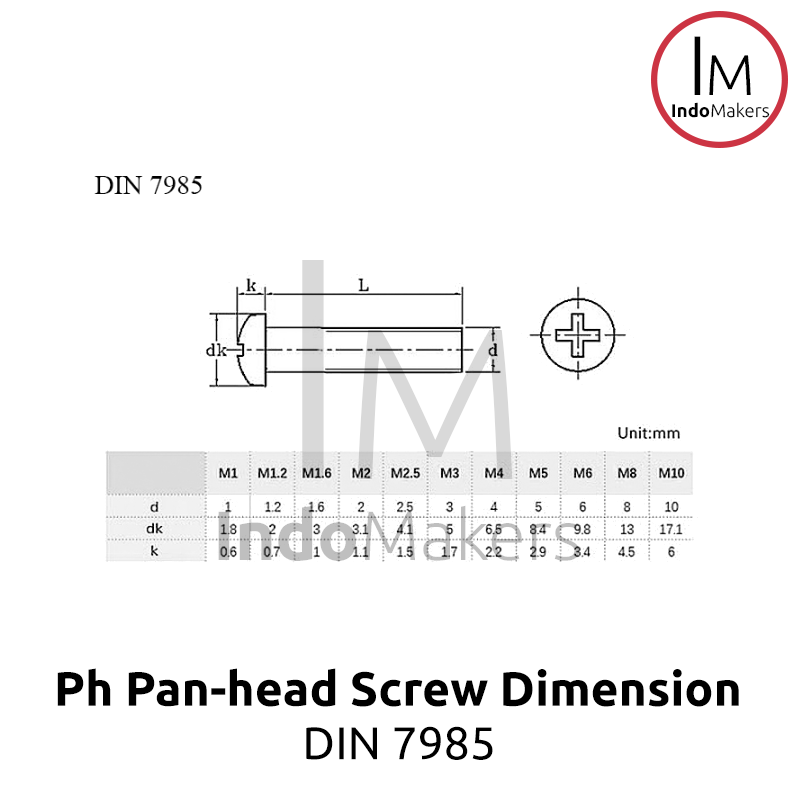 DIN7985 Philips Panhead Screw / Baut Plus Stainless Steel M3 x 8 Isi 10 pcs