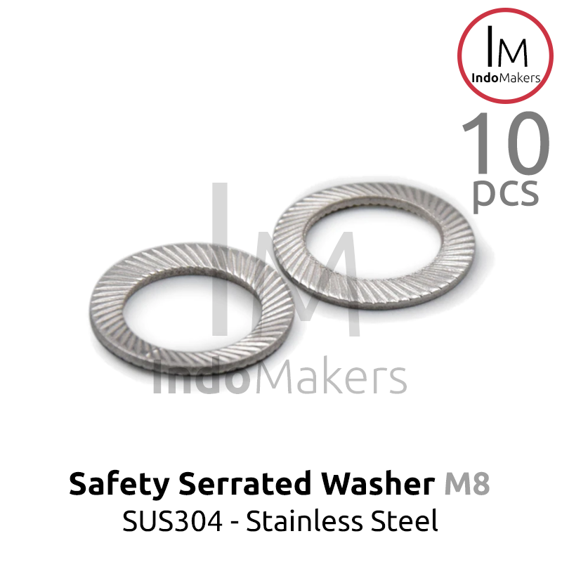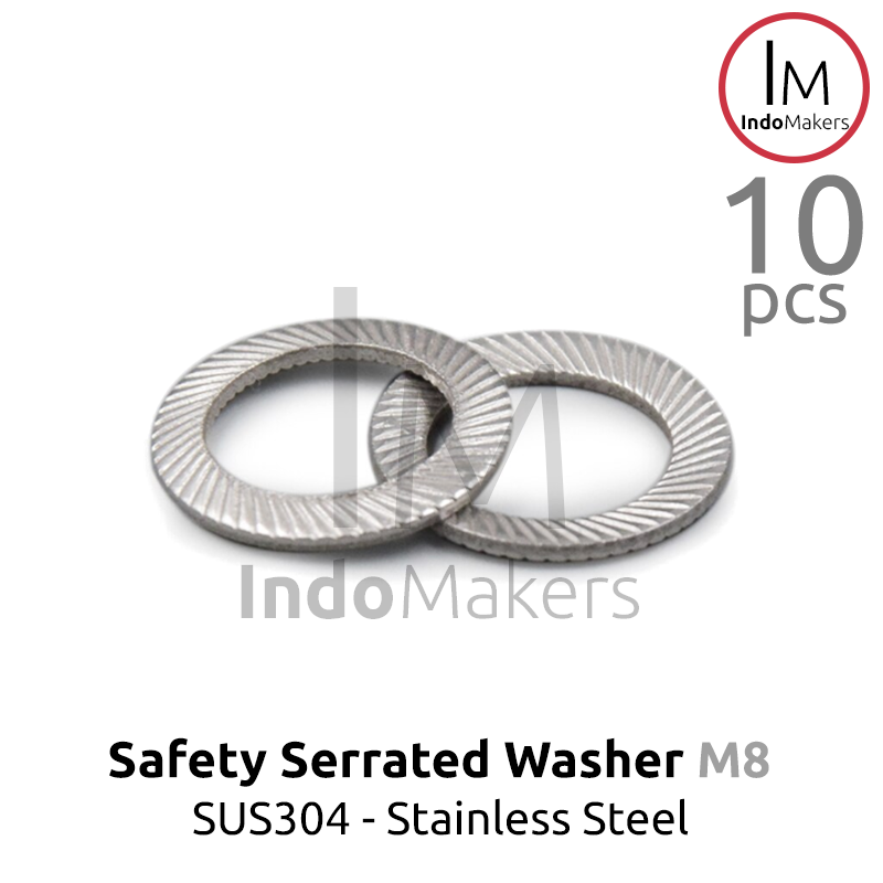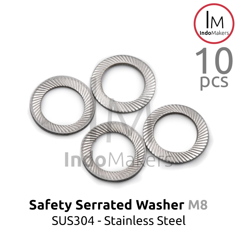 DIN9250 Safety Lock Washer Conical Serrated Stainless Steel SUS304 M8 Isi 10pcs