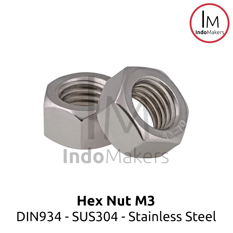 DIN934 Hexagon Nut / Mur Hexa Stainless Steel M3 Isi 10pcs