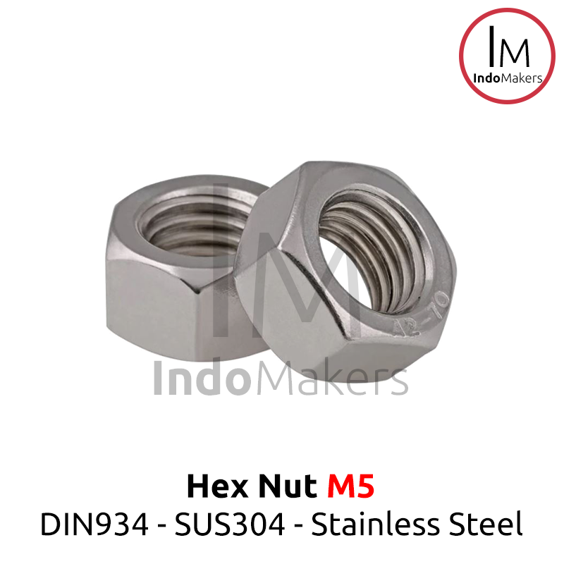DIN934 Hexagon Nut / Mur Hexa Stainless Steel M5 Isi 10pcs