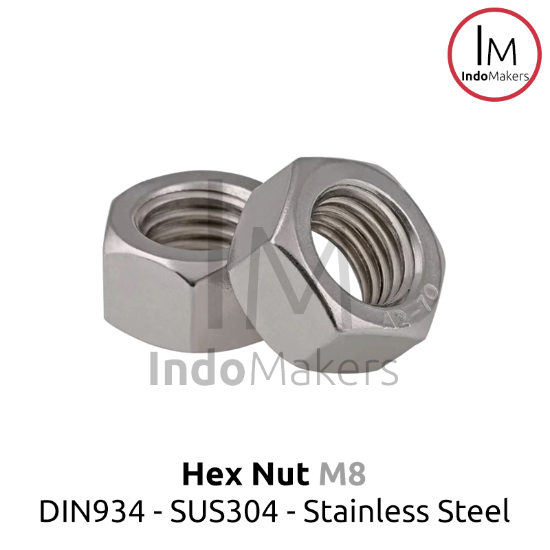 DIN934 Hexagon Nut / Mur Hexa Stainless Steel M8 Isi 10pcs