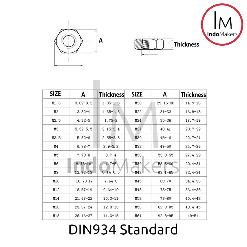 DIN934 Hexagon Nut / Mur Hexa Stainless Steel SUS304 M16 / Kunci 24 Isi 10pcs