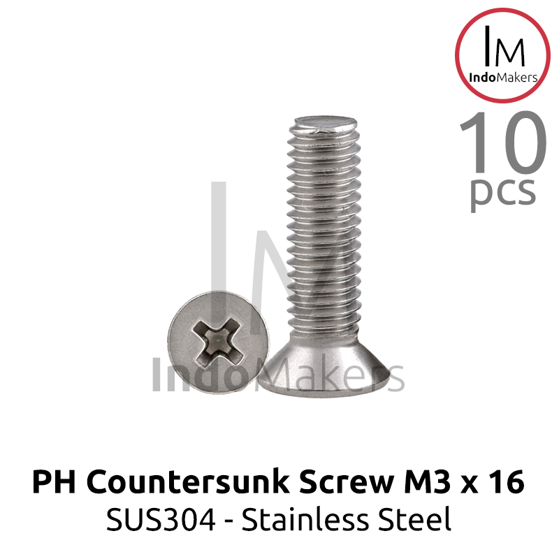 10pcs DIN965 Baut PH / JF Countersunk / Plus / Verseng / Stainless M3x16