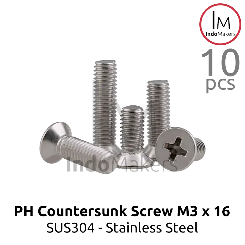 DIN965 Baut PH / JF Countersunk / Plus / Verseng / Stainless M3x16 Isi 10pcs