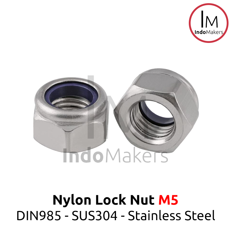 DIN985 Nylon Hex Nut / Mur Nylon Hexa Stainless Steel M5 Isi 10pcs