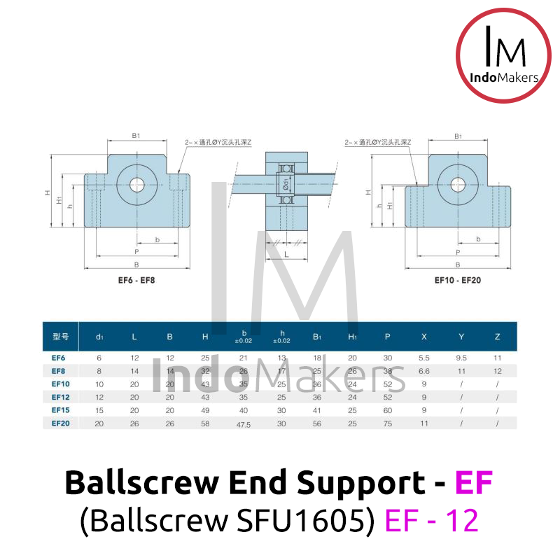EF12 / EF 12 Ballscrew SFU1605 / SFU 1605 End Support