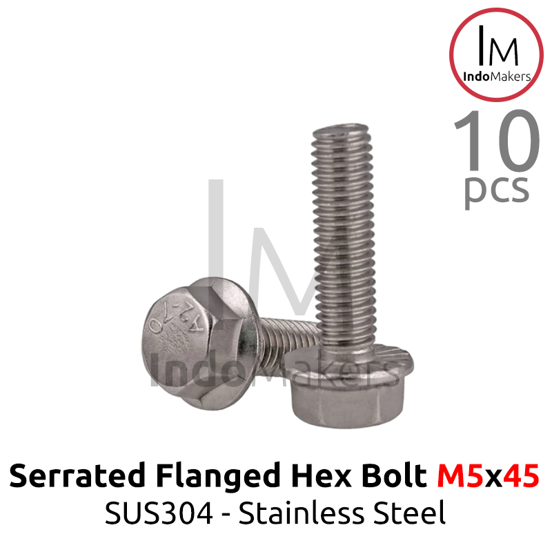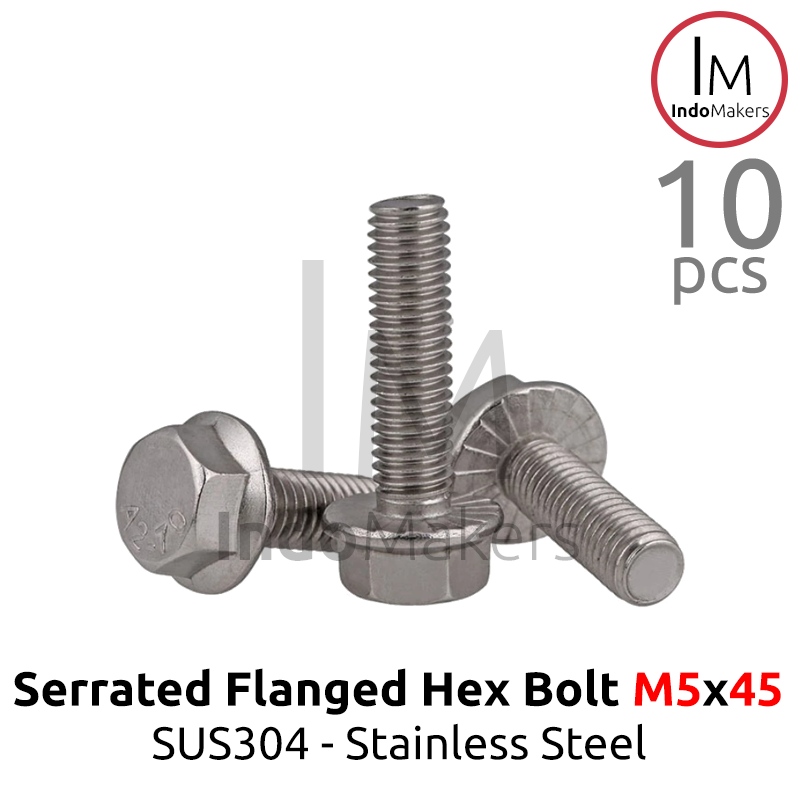 GB5789 Serrated Flanged Hexagon Bolt Stainless Steel SUS304 M5x45 Isi 10pcs