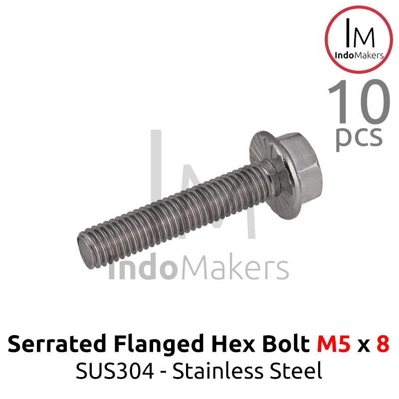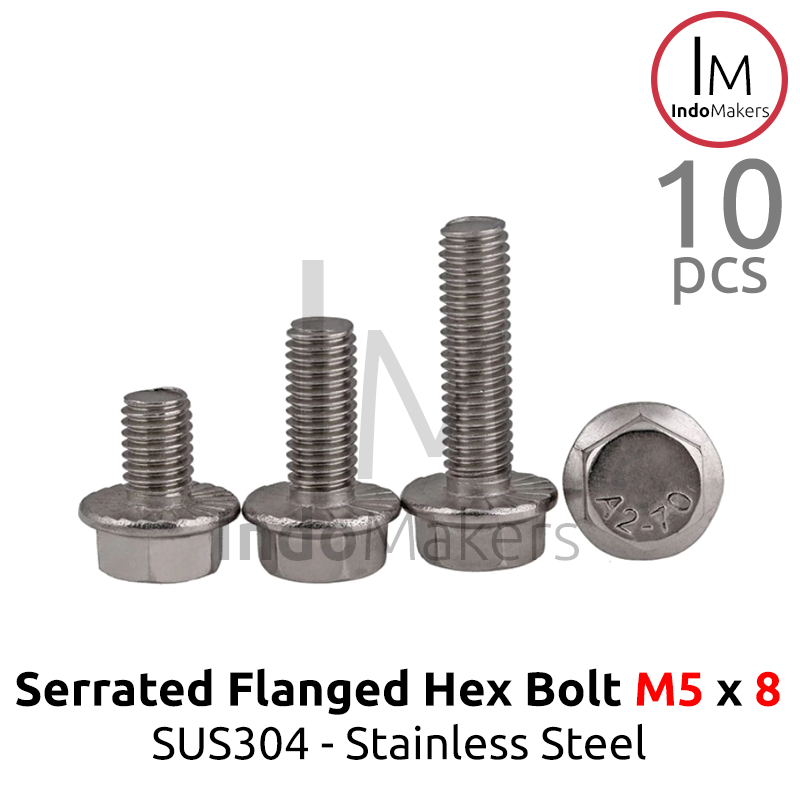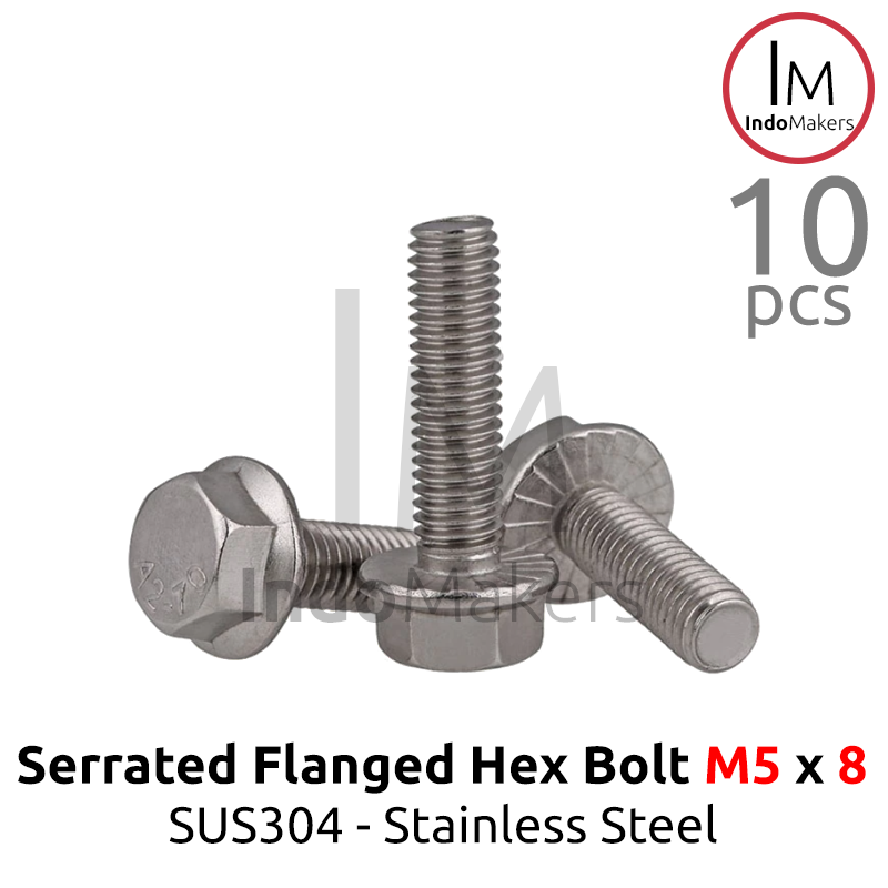 GB5789 Serrated Flanged Hexagon Bolt Stainless Steel SUS304 M5x8 Isi 10pcs