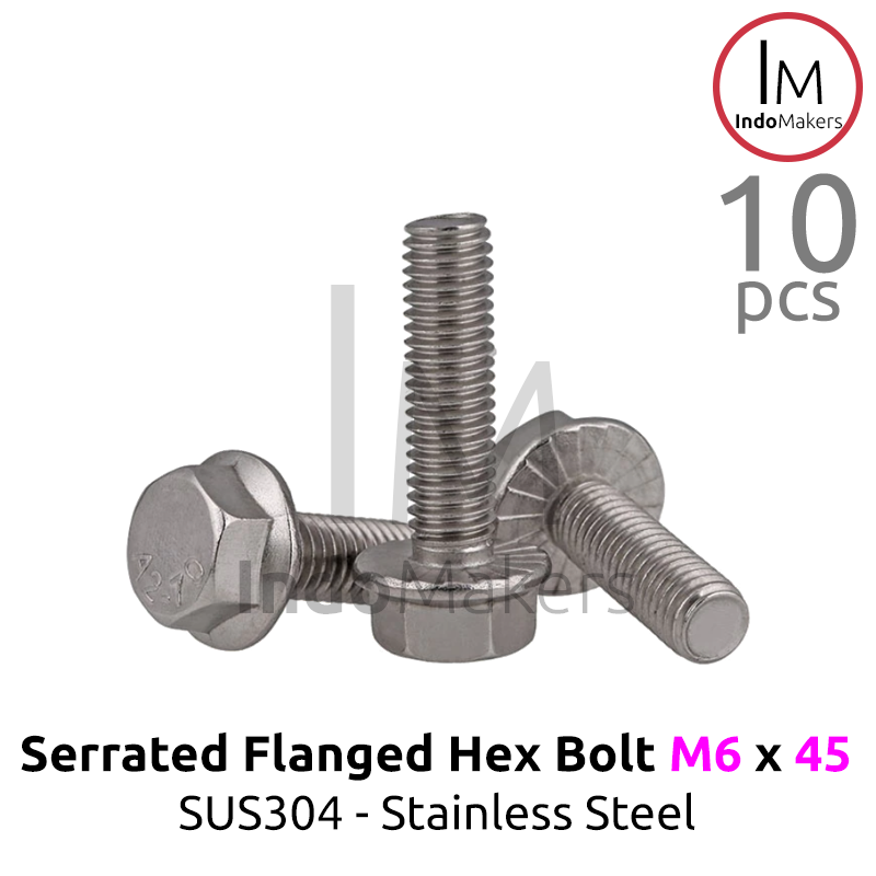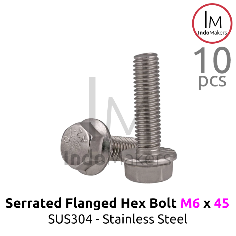 GB5789 Serrated Flanged Hexagon Bolt Stainless Steel SUS304 M6x45 Isi 10pcs