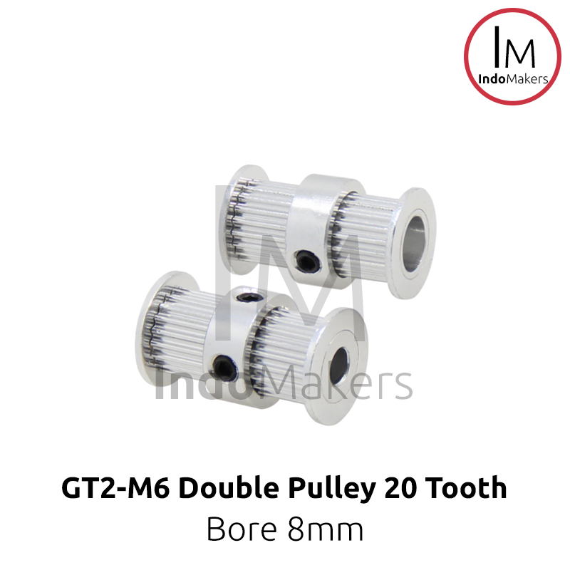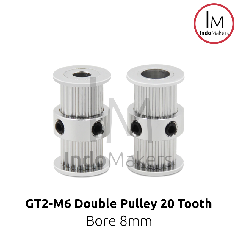 GT2-M6 Double Pulley 20 Tooth Bore 8mm Aluminium