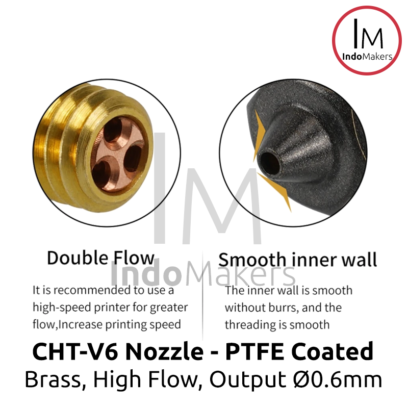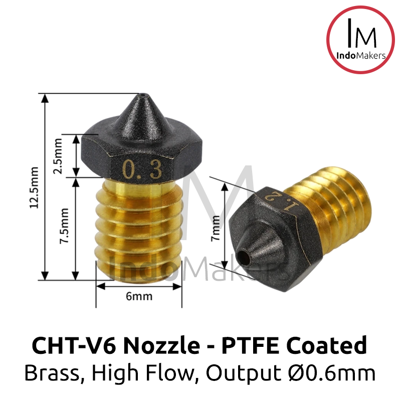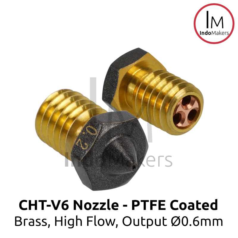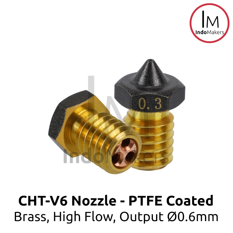High Flow High Quality V6 CHT Brass / Copper Nozzle 0.6mm PTFE Coated