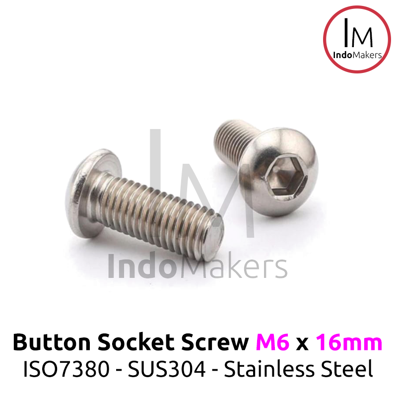 10 pcs ISO7380 Button Hex Head Screw / Baut L Button Stainless Steel M6x16mm