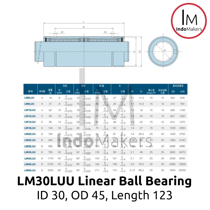 1x LM30LUU / LM 30 LUU Longer Linear Bearing Sliding Bushing