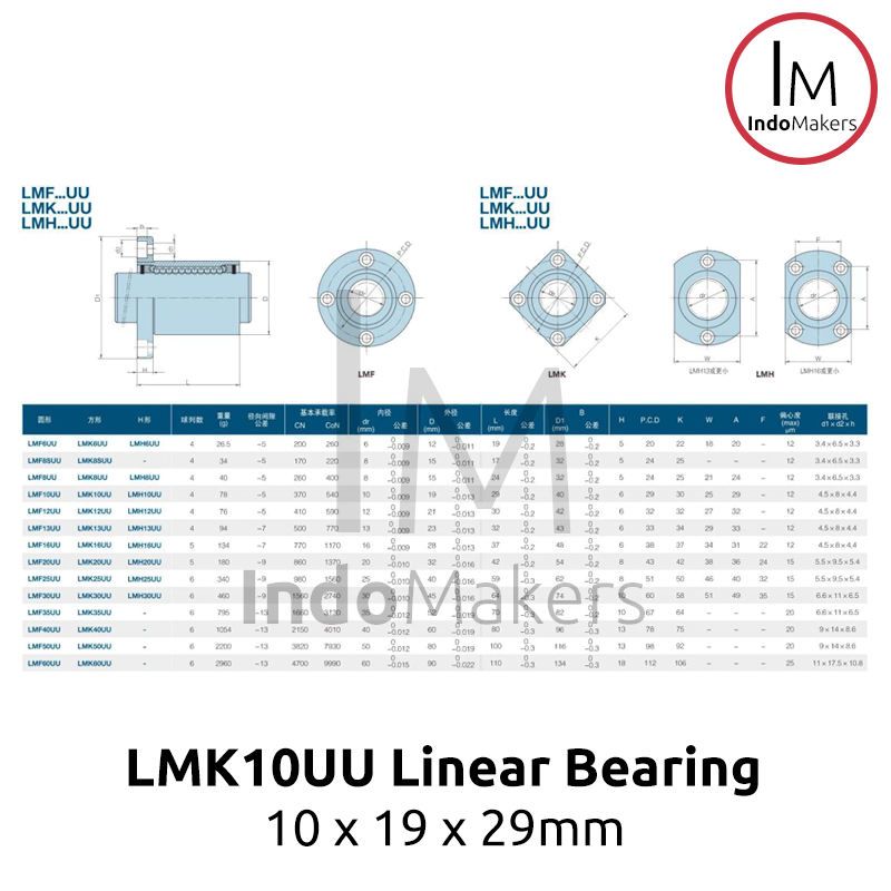 LMK10UU / LMK 10 UU Linear Motion Square Flange Bearing