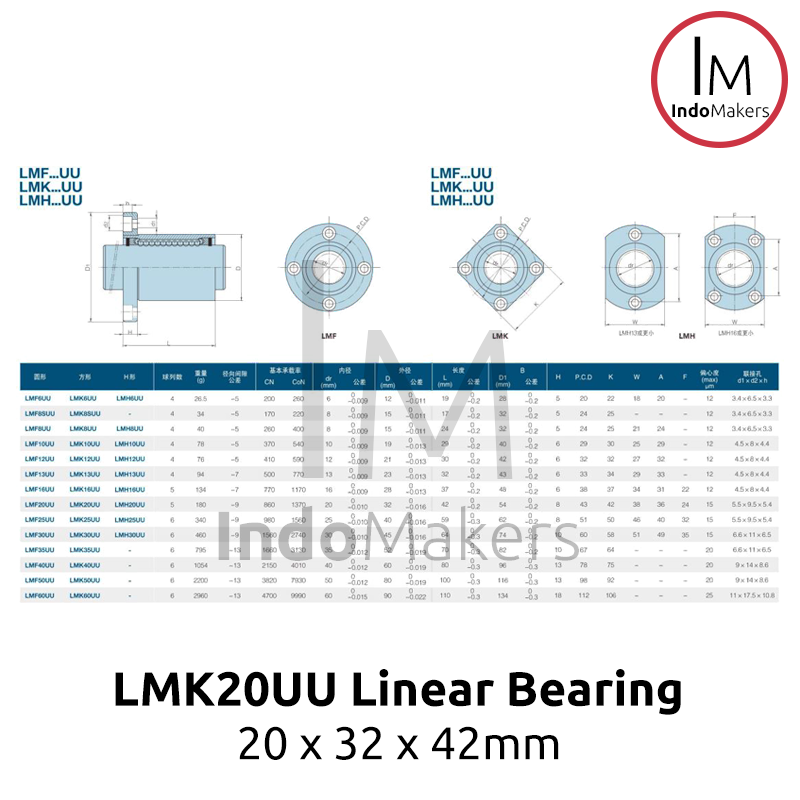 LMK20UU / LMK 20 UU Linear Motion Square Flange Bearing