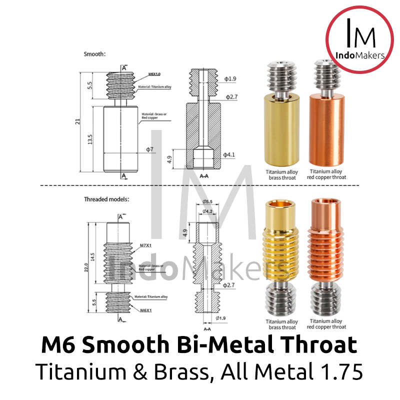 M6 / Ender3 Bi Metal Throat All-Metal Titanium Brass 1.75mm