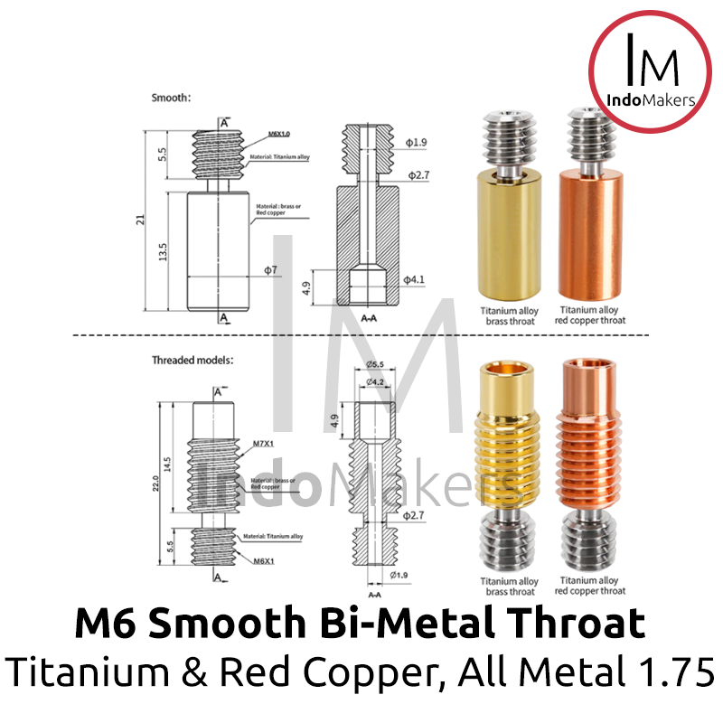 M6 / Ender3 Bi Metal Throat All-Metal Titanium Red Copper 1.75mm