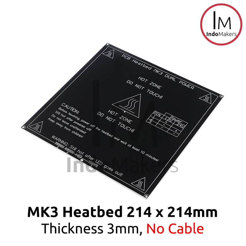 MK3 Aluminium Heatbed / Heat Bed 214 x 214 Dual 12/24 VDC No Cable – NORMAL