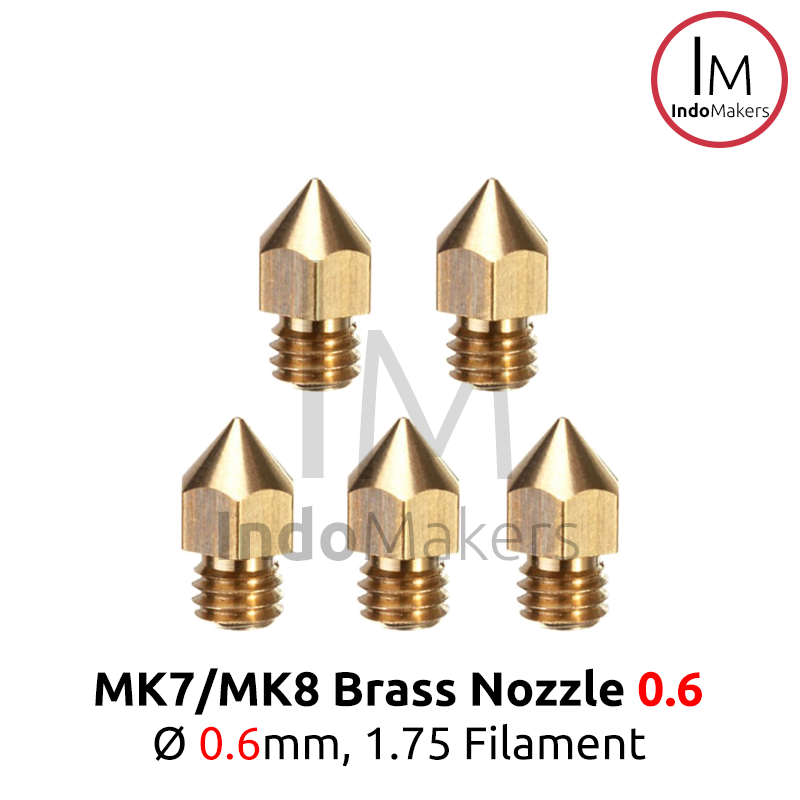 1x MK8 Brass 3D Printer Nozzle 0.6mm, for 1.75mm Filament Diameter M6