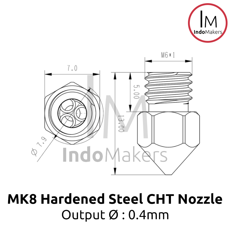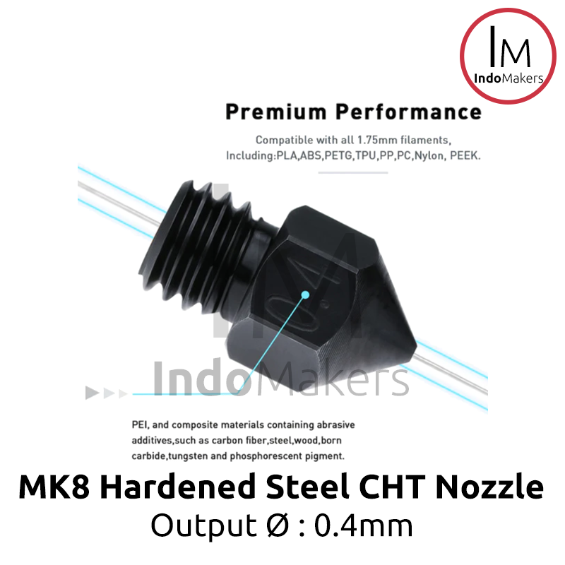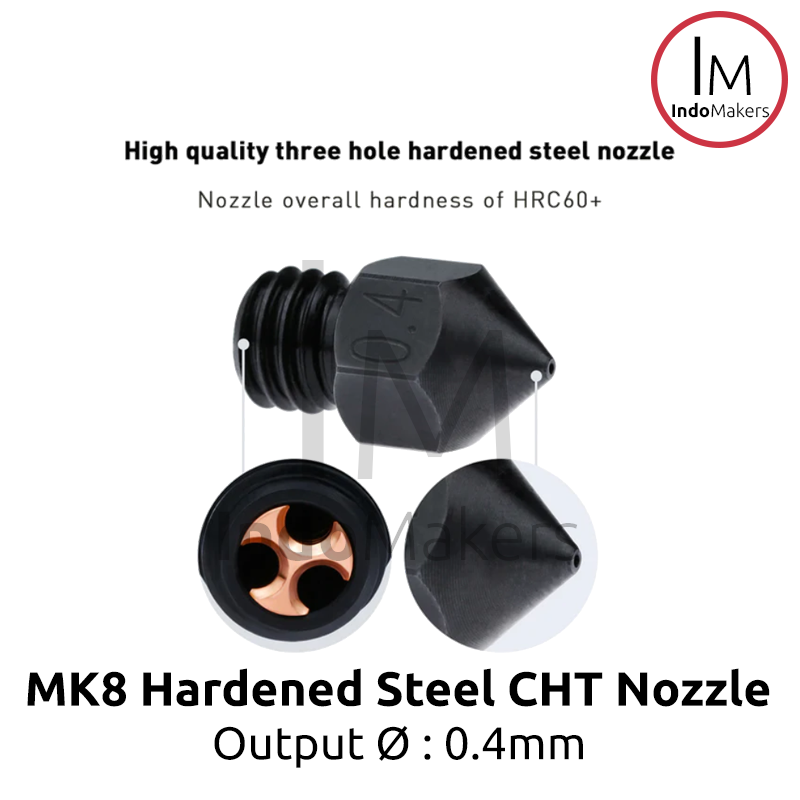MK8 / CR10 3D Printer CHT Hard-Steel Nozzle 0.4mm Output, Input 1.75mm