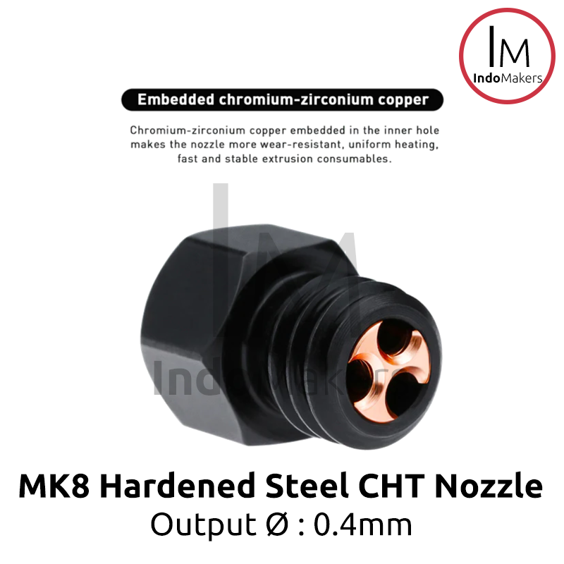 1x MK8 / CR10 3D Printer CHT Hard-Steel Nozzle 0.4mm Output, Input 1.75mm