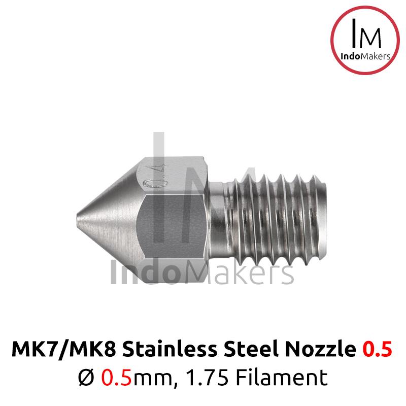 MK8 Stainless 3D Printer Nozzle 0.5mm, for 1.75mm Filament Diameter M6