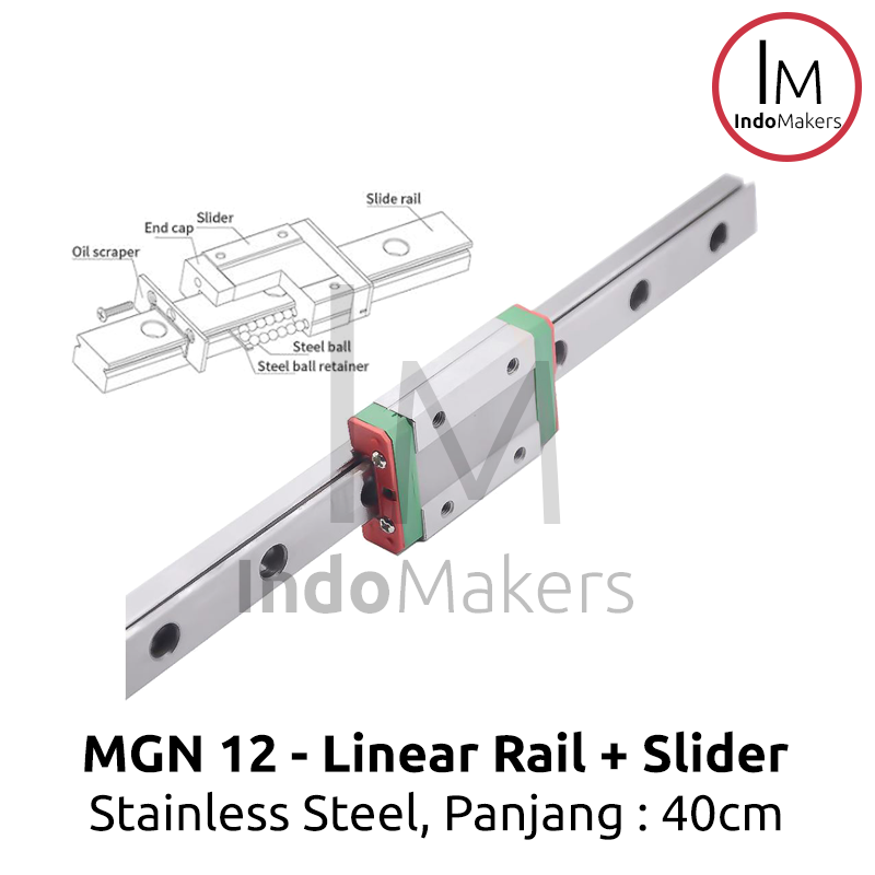 Paket MGN12 Linear Guide Rail 40cm dan Linear Slide Bearing MGN12C