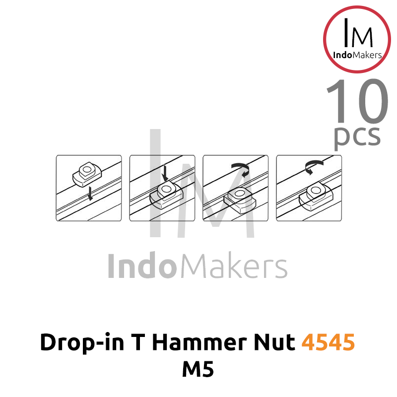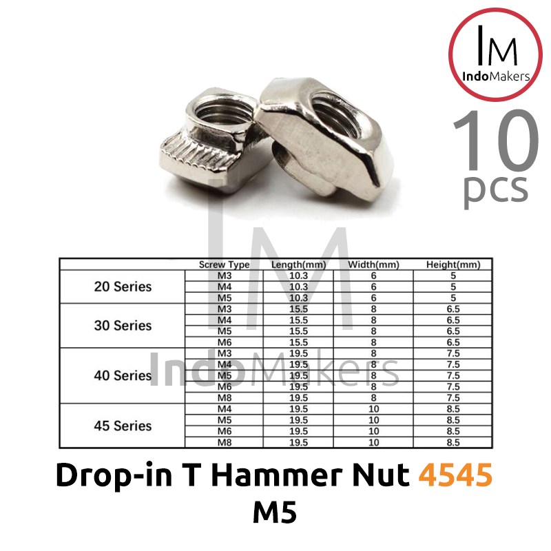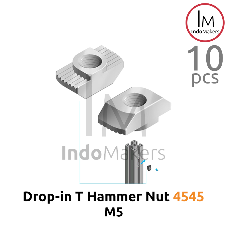 T Hammer Nut M5 Drop-In Aluminium Profile 4545 Isi 10 Pcs