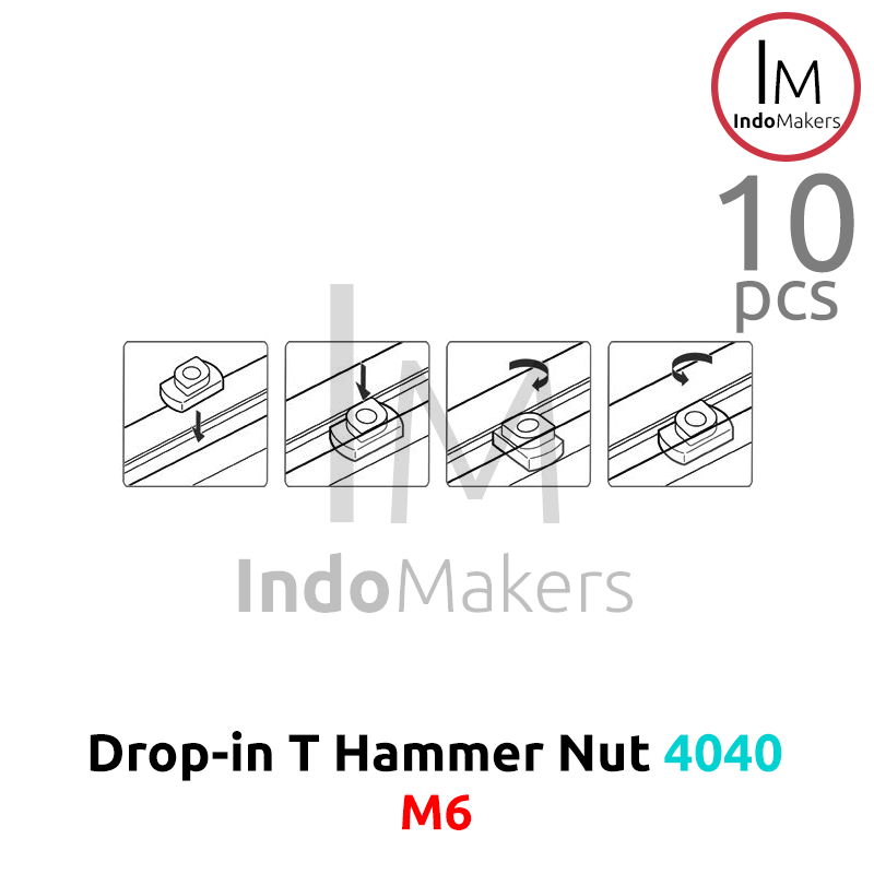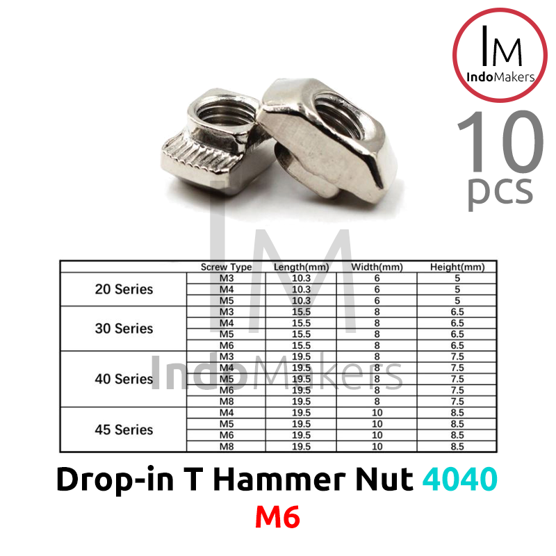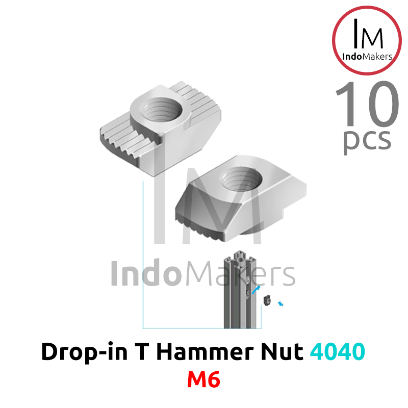 10 pcs T Hammer Nut M6 Drop-In untuk Aluminium Profile 4040