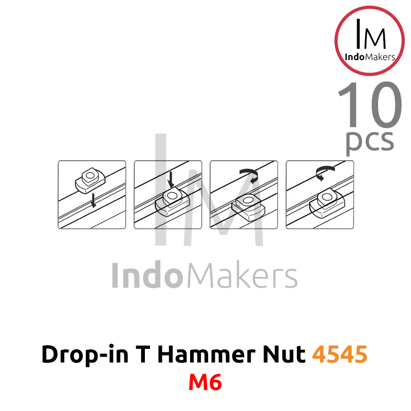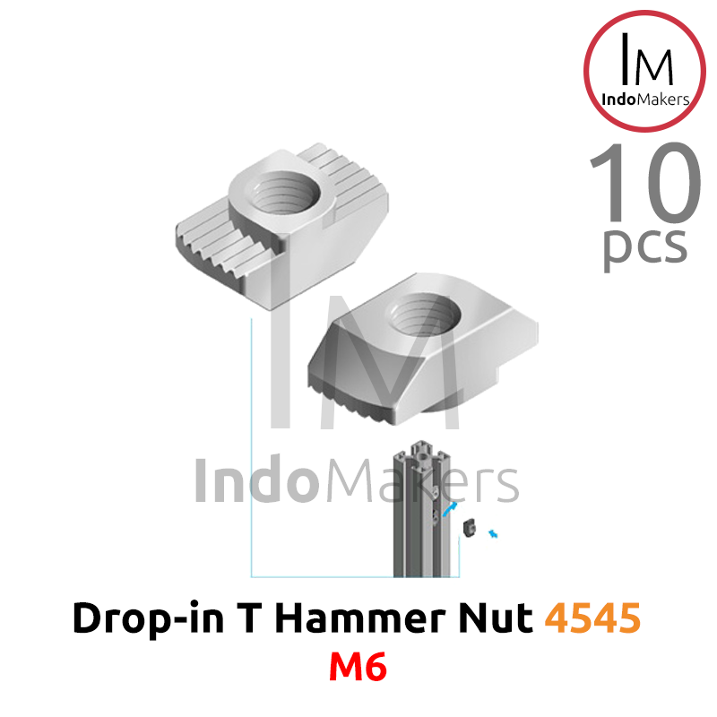 T Hammer Nut M6 Drop-In Aluminium Profile 4545 Isi 10 Pcs