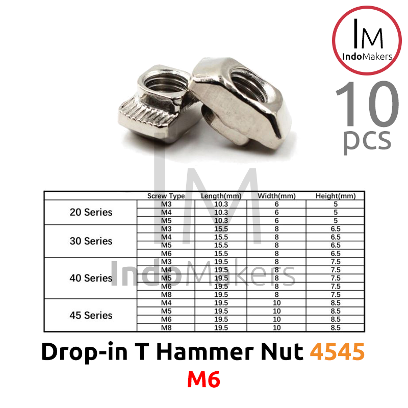 10 pcs T Hammer Nut M6 Drop-In untuk Aluminium Profile 4545