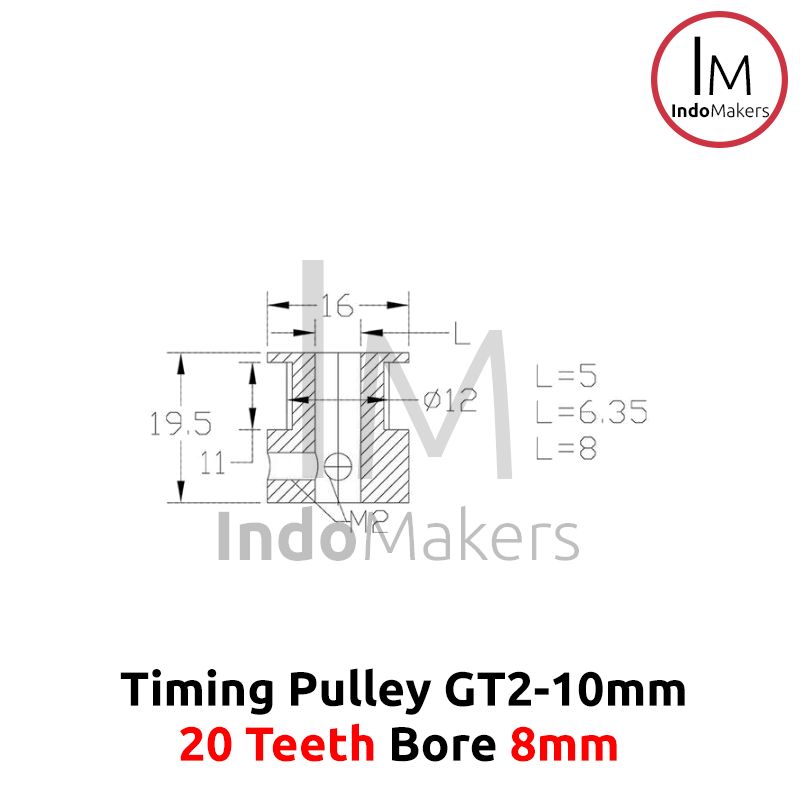 Timing Pulley GT2-10mm 20 Teeth Bore 8mm for 10mm GT2 Belt