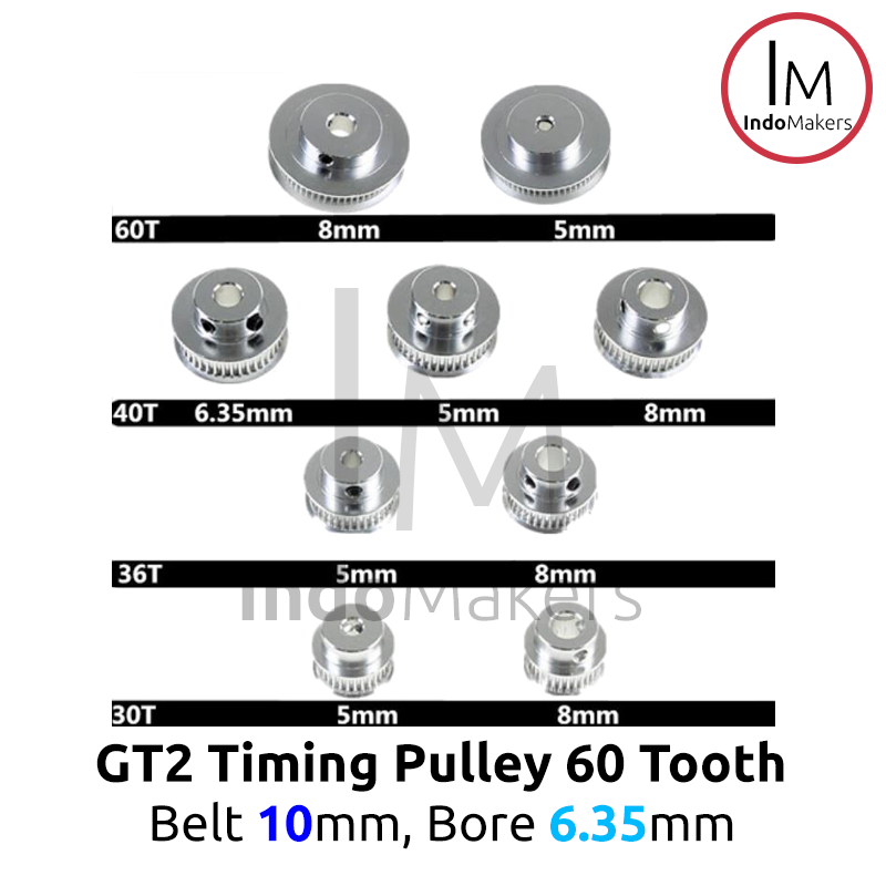 Timing Pulley GT2-10mm 60 Teeth Bore 6.35mm for 10mm GT2 Belt