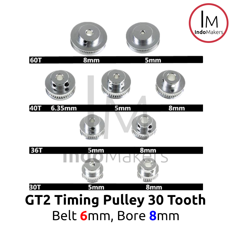 Timing Pulley GT2-6mm 30 Teeth Bore 8mm for 6mm GT2 Belt