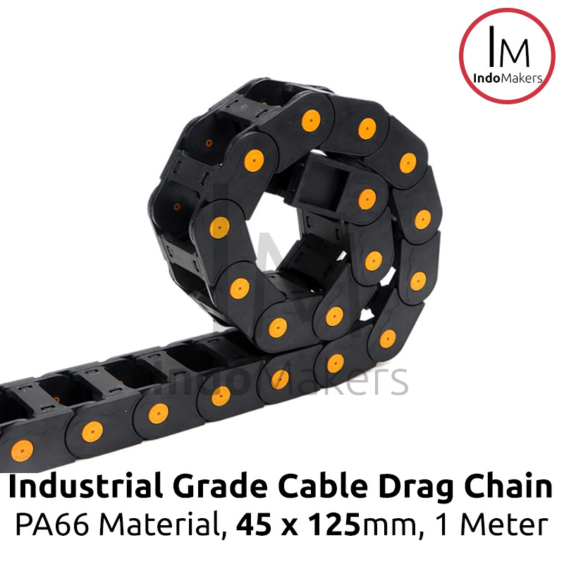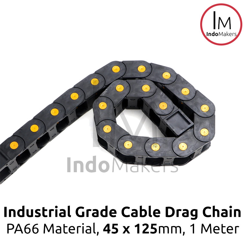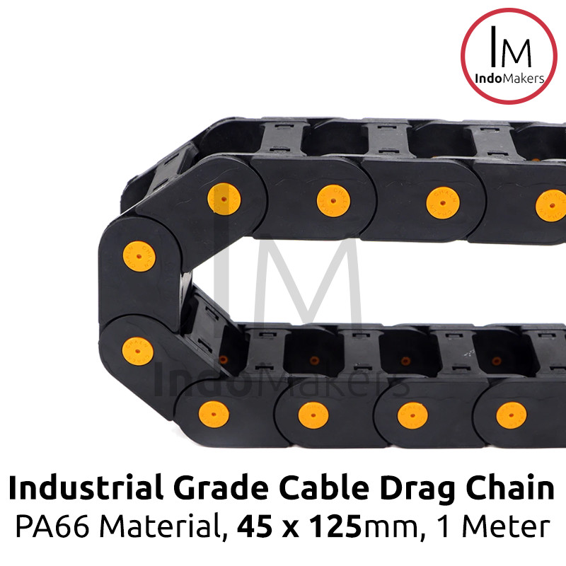 Drag Chain ini tipe penutupnya tidak full enclosed. Drag chain ini biasanya digunakan untuk menjaga kerapihan kabel pada mesin-mesin hobby hingga industri.