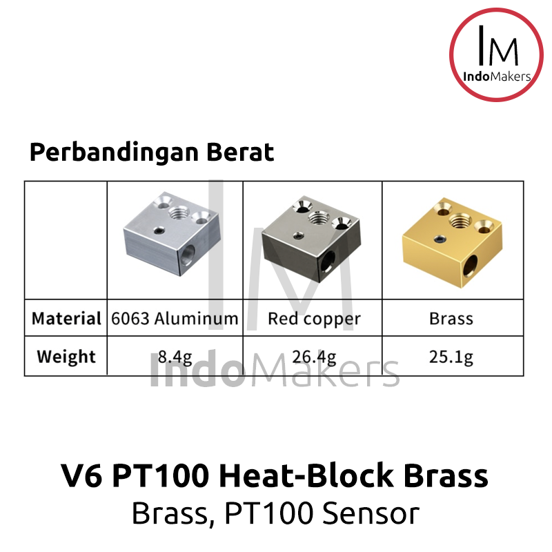 Berbahan Brass, memiliki thermal konduktivitas yang baik, memungkinkan untuk print lebih panas.